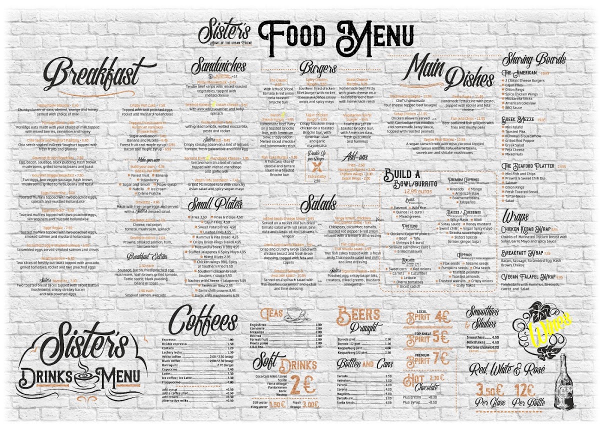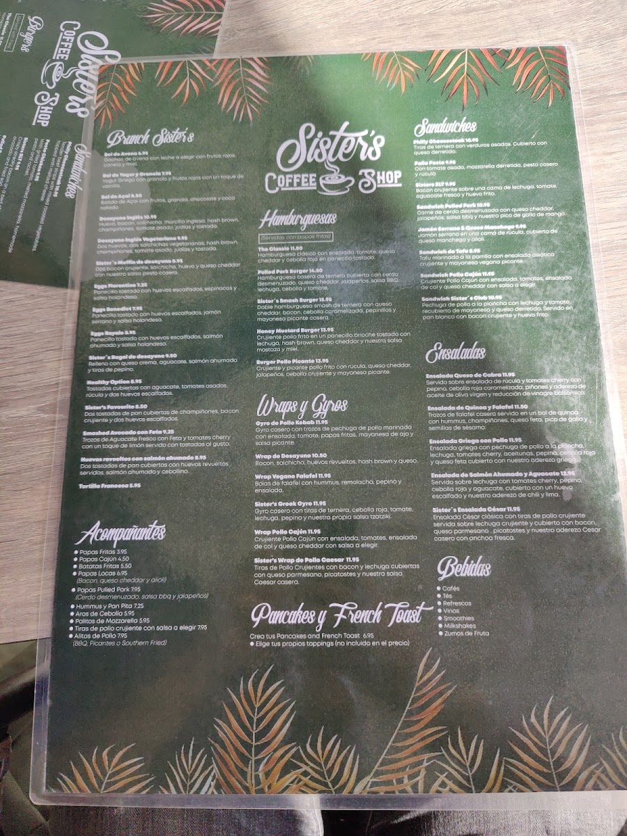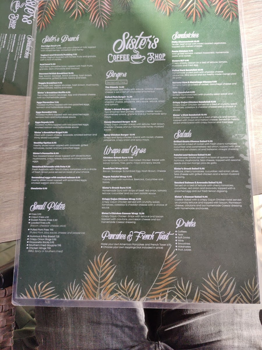 Sisters Coffee Shop And Kitchen offers a delightful and varied menu that caters to a wide range of tastes. The breakfast and brunch options are particularly noteworthy, with standout dishes such as the Eggs Benedict, a perfect combination of poached eggs, creamy hollandaise sauce, and savory ham, making it a must-try for any brunch lover. For a lighter, healthier choice, the Fish Cakes with Poached Eggs offer a delightful blend of fresh ingredients, while the Falafel provides a flavorful vegetarian option, ideal for those seeking a plant-based meal. Coffee enthusiasts will appreciate the café's range of beverages, including the unique Non Alcoholic Barraquito Coffee, which offers a refreshing twist on the classic Canary Islands coffee, and the creamy Flat White with Soya Milk, a perfect choice for those looking for a dairy-free alternative. To finish off your meal on a sweet note, the homemade Carrot Cake is an excellent dessert option, rich in flavor and the perfect way to end a meal. Whether you're in the mood for a filling breakfast or a light snack, Sisters Coffee Shop And Kitchen offers something for everyone, with quality ingredients and flavorful dishes that make each visit a memorable one.